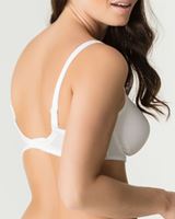 Sujetador sin costuras con aro, renovado, con copas preformadas. Acabado liso, con algunos sutiles detalles, como los cristales Swarovski en el adorno de la parte delantera central y el motivo en en los tirantes. Los tirantes se pueden cambiar. Las firmes copas preformadas apoyan y elevan el busto, creando la bella forma redondeada típica de Satin. Esta nueva forma se encarga de que el busto sea aún mejor centrado, y no tiene efecto minimizante, como el clásico sujetador con aro de Satin. La parte superior de las copas tiene un acabado liso y no dejan marcas debajo de prendas de vestir.